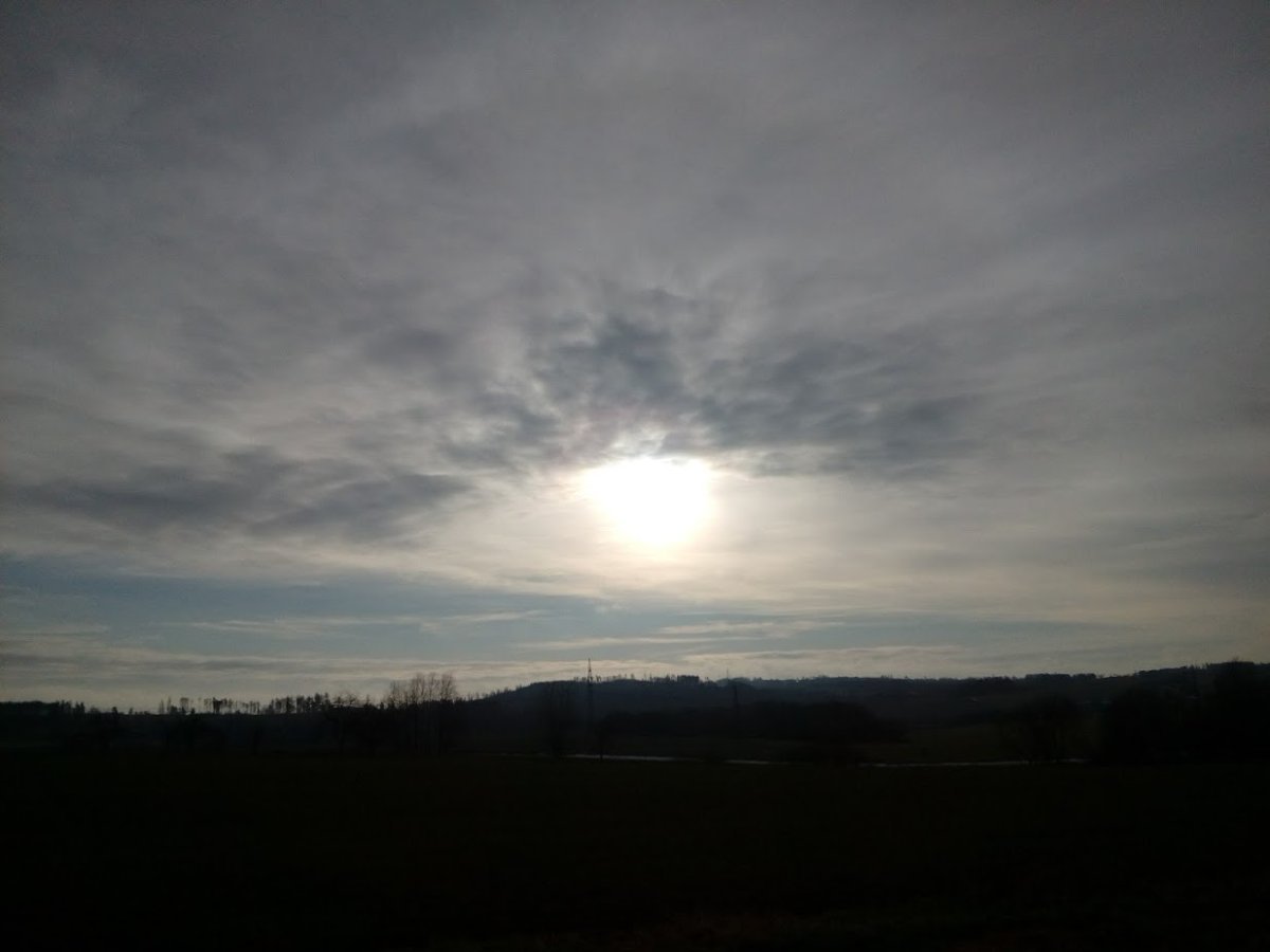 Vítr se stočil na V a zeslábl.