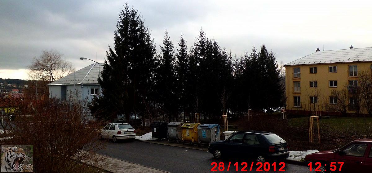 teplota klesla, střechy oschly a objevil se neuvěřitelně modrý kousek oblohy viz foto z 2012 12 28 ve 12:28 - nad hlavou černo-šedo, snad to modré se roztáhne i k nám nad ves