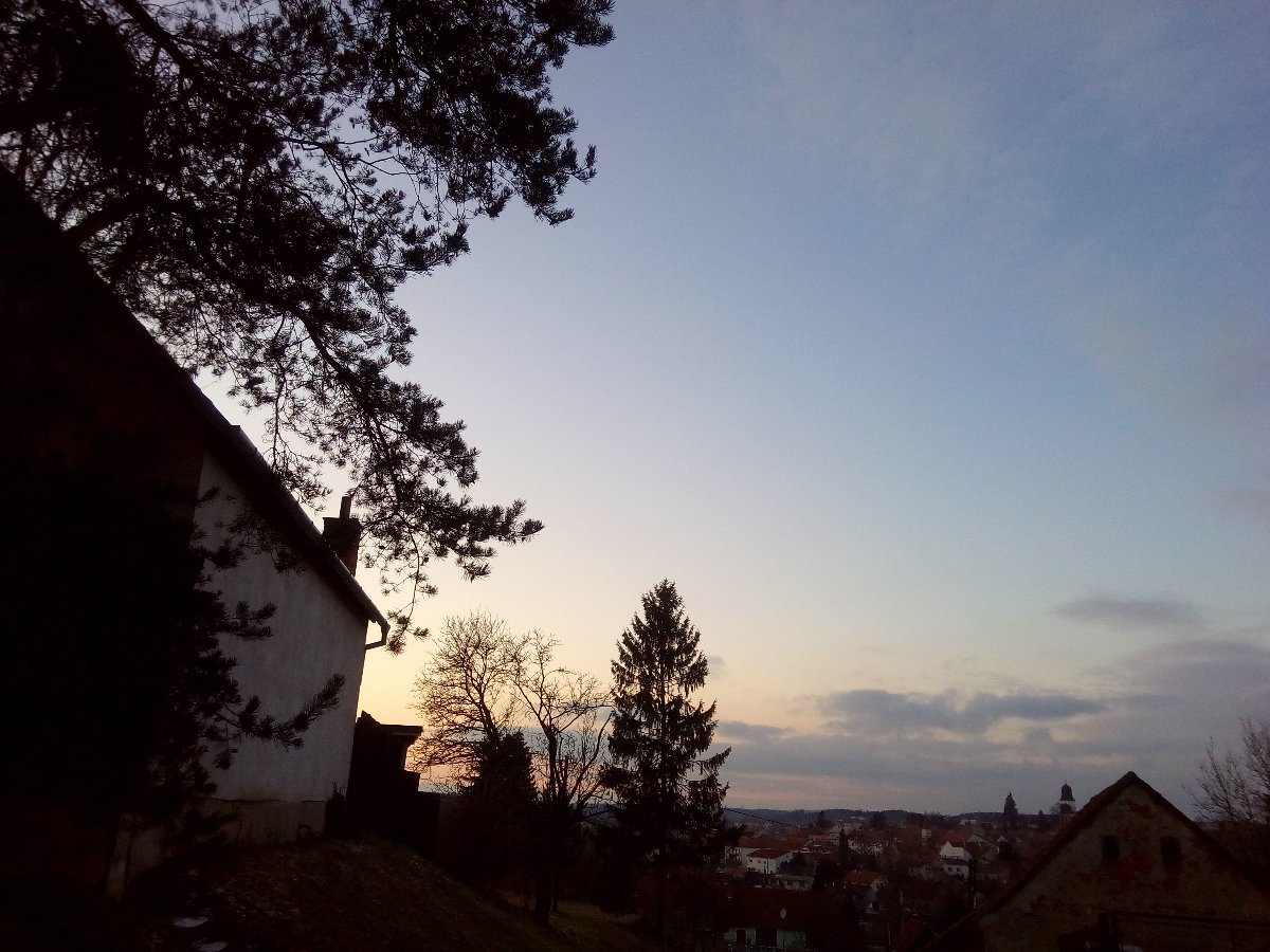 Skoro jasno. Po západu Slunce vedle Temelína.