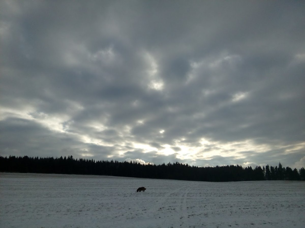 Poledne zatazeno ,polojasno ted. Dnes rano teplota -1°C.