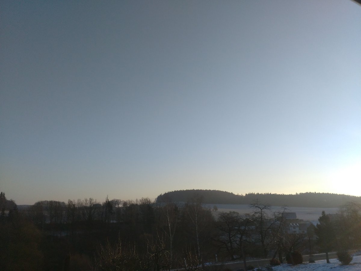 Oblačnost 16,6%, zákl.oblačnosti 638,44m.n.m., tlak 1018,8hPa↓, dohlednost 25km, rel.vlhkost 92,3%, abs.vlhkost 2,10g/m3, SSV vánek 20° 0,7m/s(1 Bft), poc.teplota -13,99°C, wind chill -14,44°C, tepl.ros.bodu -11,42°C, tepl.mraků -12,58°C, délka dne u nás = 9hod.41min.15vt.(40,4%dne), HUMIDEX -14,44°C, včerejší průměrná teplota = -3,25°C.