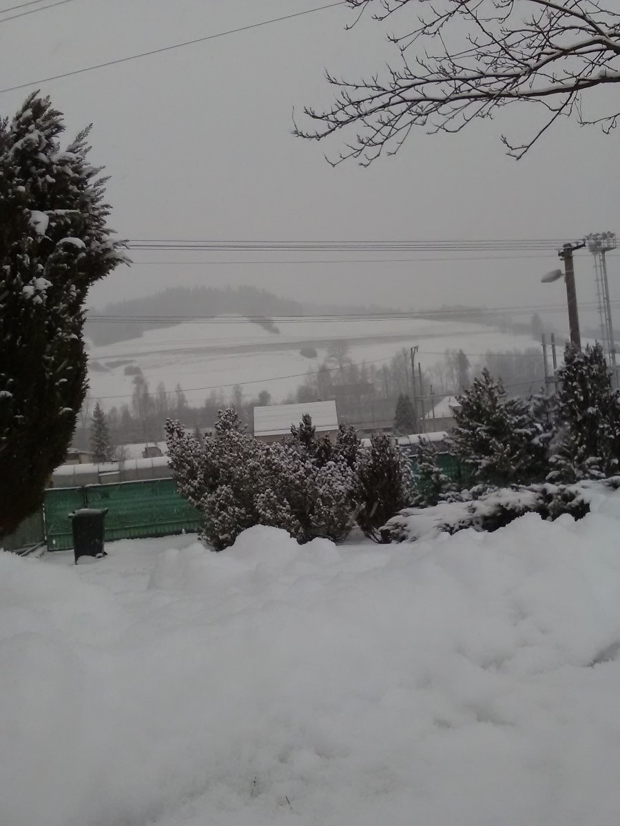 Tlak 1015 hPa, vlhkost 75%, vánek 1.5 m/s od V, drobně sněží