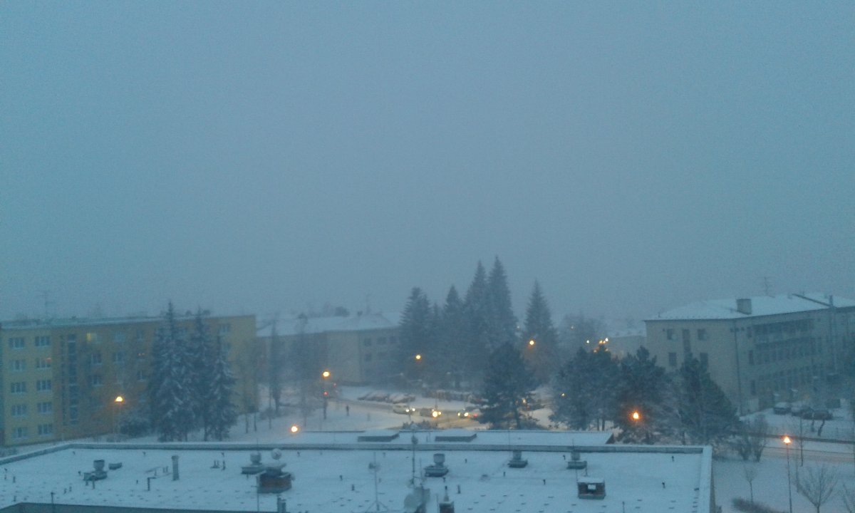 foto z 2018 02 07 v 18:06:29 zachytilo padání sněhu - místy je jen morko místy se drží sníh - co to udělá do rána