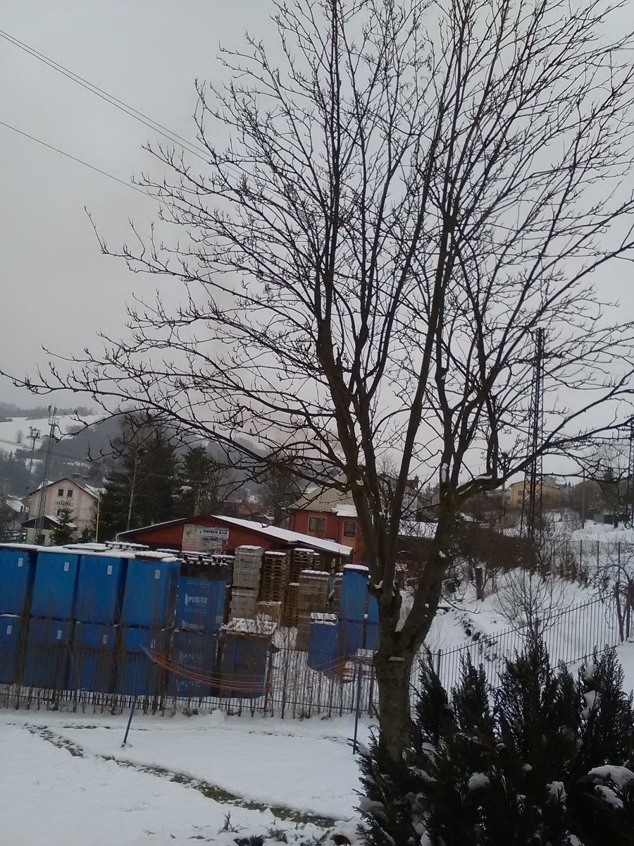 slunce prosvítá přes oblačnost a sníh pomalu odtává ale stále je ho dost hlavně v okolí města