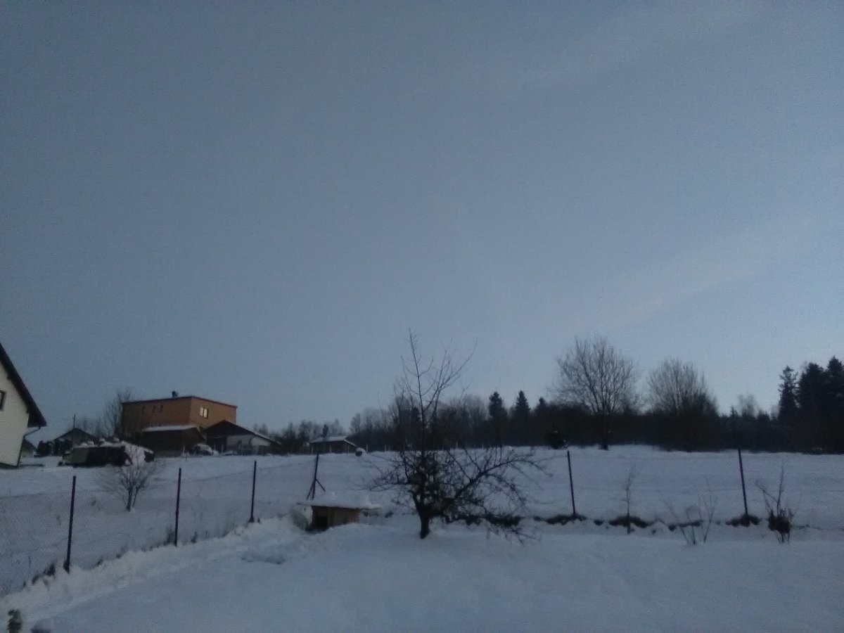 Trvalé mírné sněžení. Tlak 1016hPa, vlhkost 83%. Dnešní minimum bylo -1,6°C.