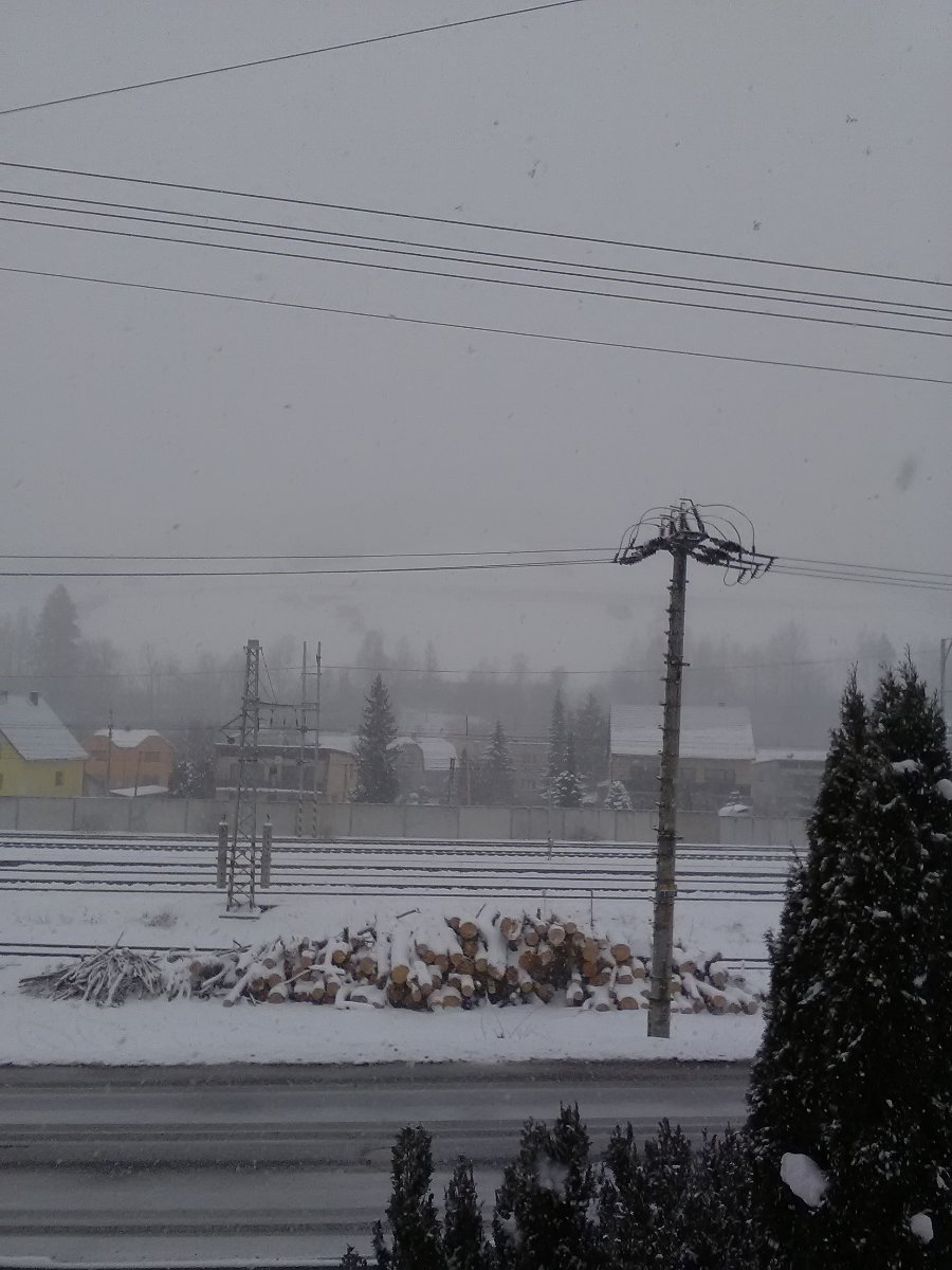 Je zataženo a sem tam spadne vločka. Je bezvětří.