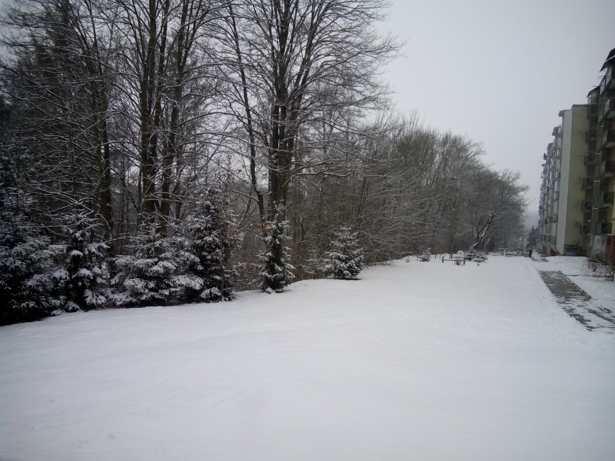 Zamračené a slabé sneženie.