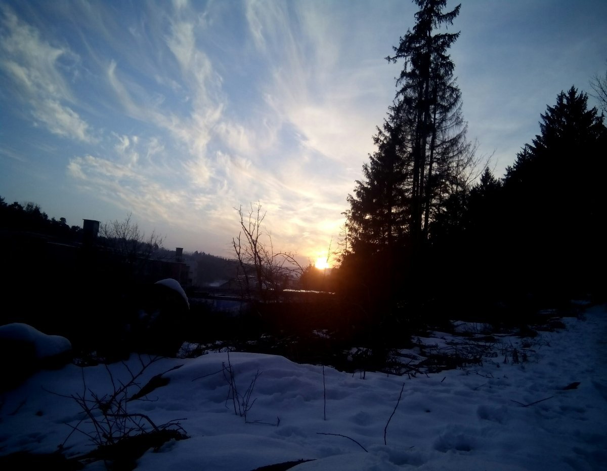 krásný zimní den dnes byl :) Tmin ráno -9,6 C. Zápas slunce nad Poličnou, Bražisky.