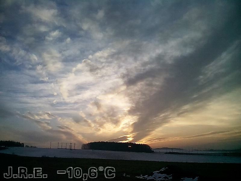 Mrzne. Tlak 995 hPa, vlhkost 75%, vítr SZ 5,8 km/hod.