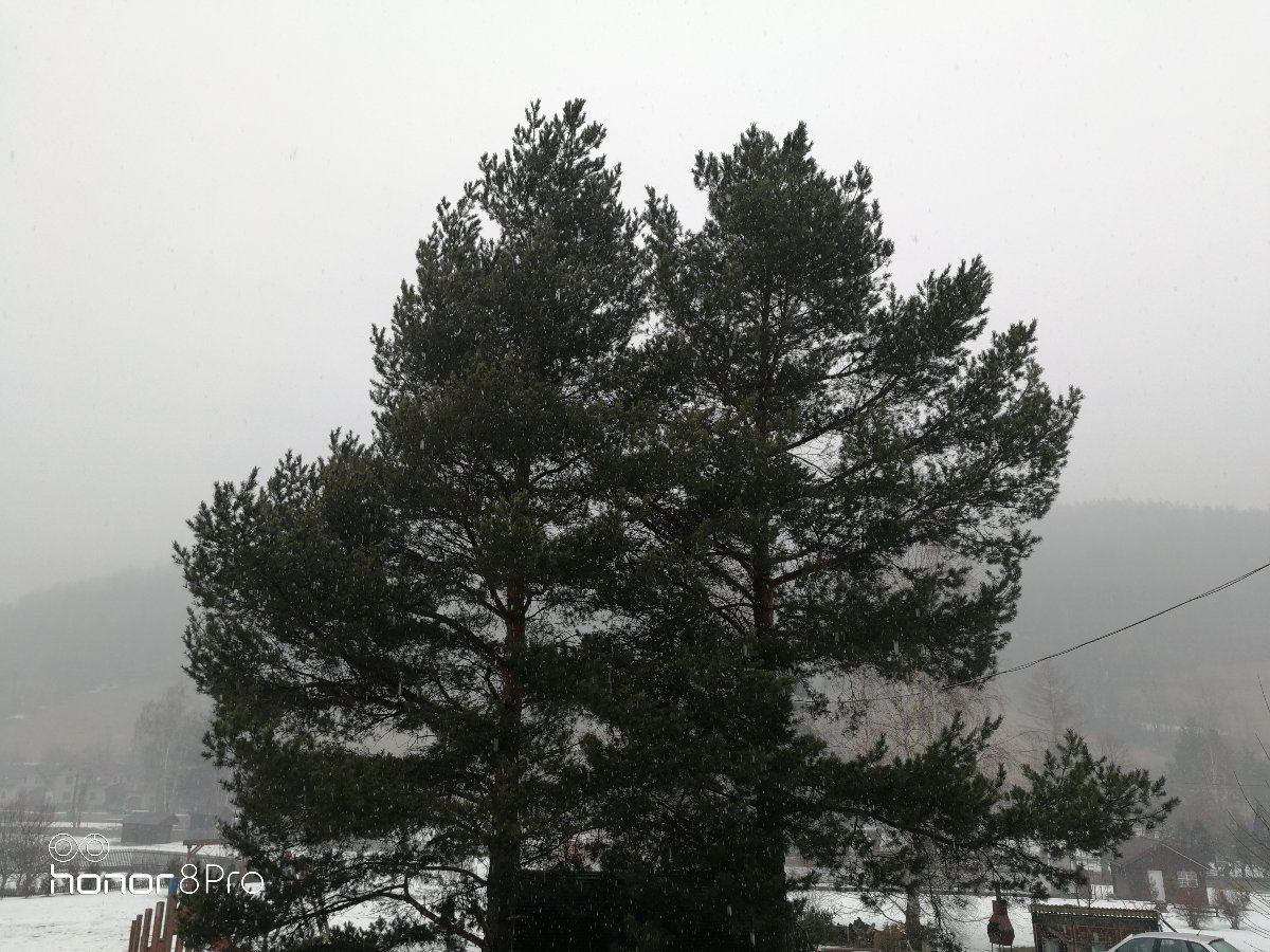 Sněží a sněží, fouká nárazový vítr, Markvartice cca 1.5km od Rokytnice a cca 8km od Třebíče