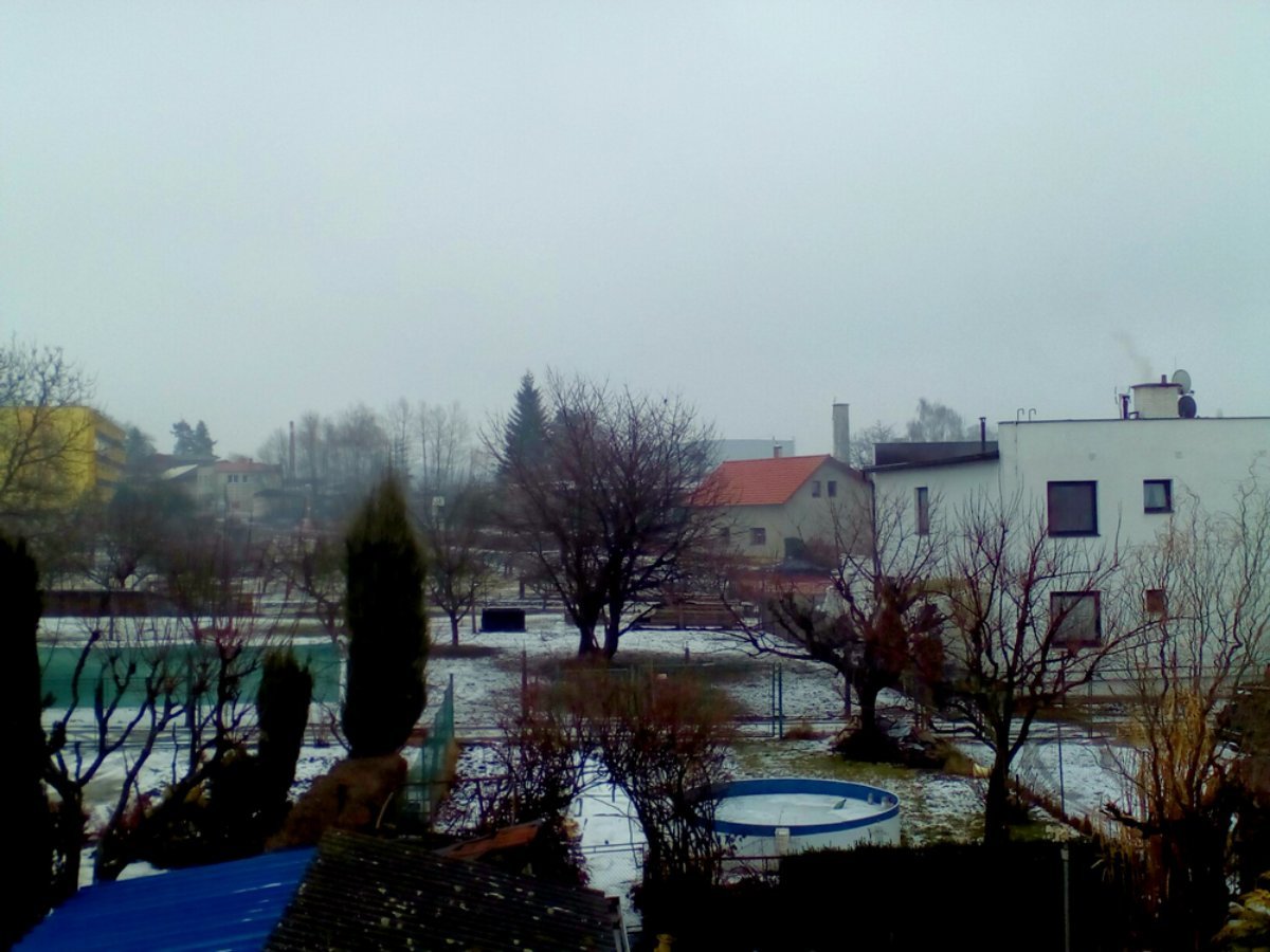 Mlžný opar,slabě mrholí tlak 988hPa,slabý jižní vítr