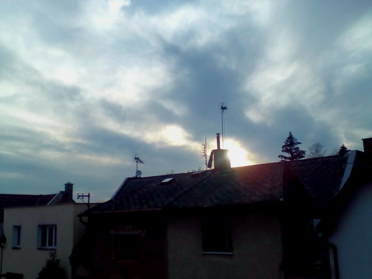 Mírný JV vítr s občasnými nárazy, nízká oblačnost.