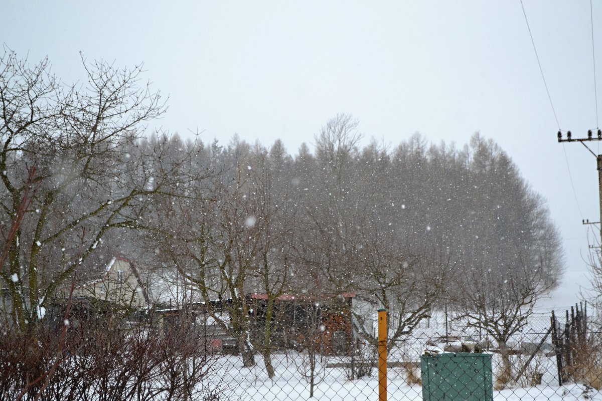 Občas slabě sněží, mírný S vítr.