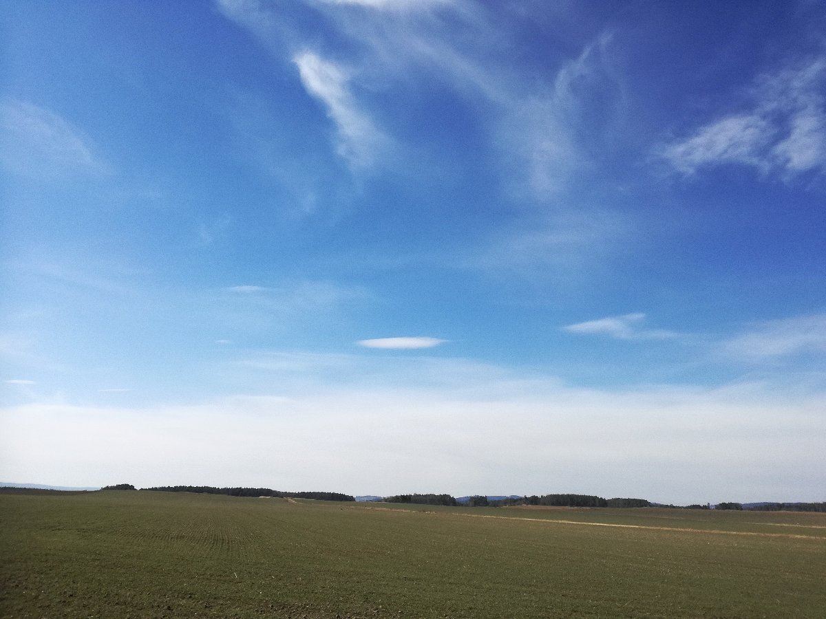 Polojasno, ale pořád větrno. Tlak 1014 hPa, vítr J 7 km/hod.