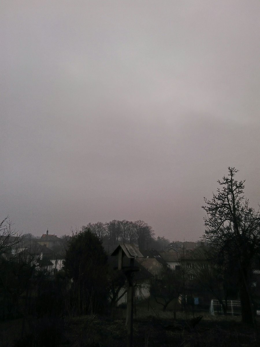 Četná sněhová přeháňka .Díky teplotě na nule se sníh i drží .Máme bílo :)
