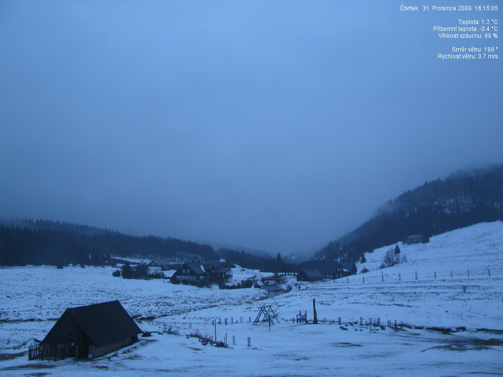 Mrzne a mlha se válí doslova po zemi...Zase je tu nějak chladněji, než všude jinde. Nejtepleji bylo hned ráno, pak už teplota jen klesala...