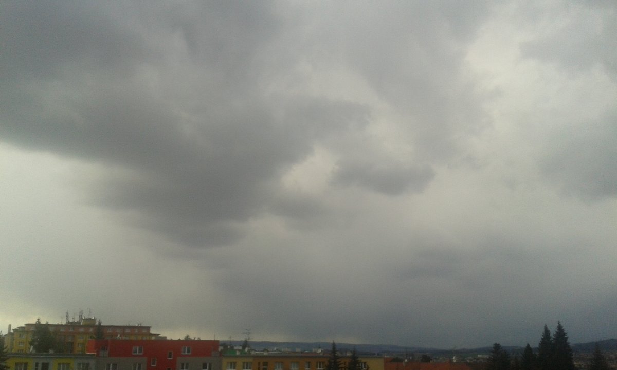 Přechází dešťová přeháňka,čerstvý vítr,tlak 1002 hPa