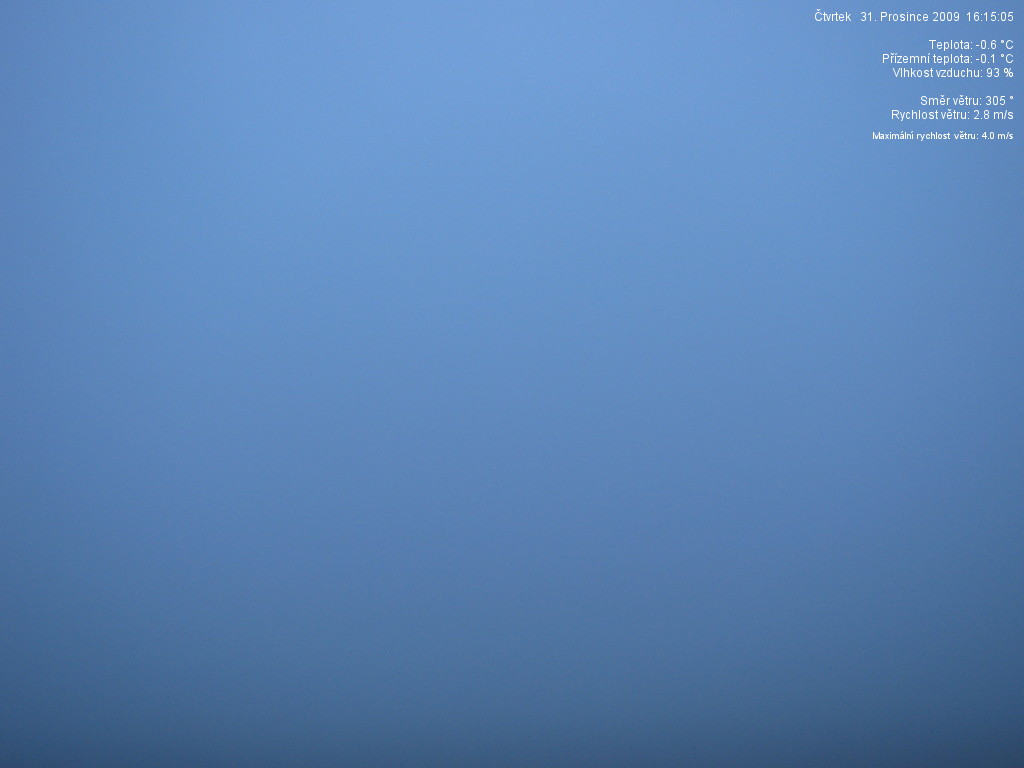 Slabý vítr,hustá mlha-dohlednost 30m,sníh 2cm-mokrý, Přeji pěkný nový rok 2010. (Foto16:10)