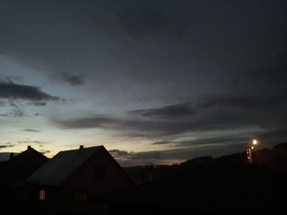 Vítr JV 3 m/s, tlak 1008 hPa, vlhkost 72%. Teplota min. 8,5°C a max. 17,5 °C. Foto/19:42 hod.