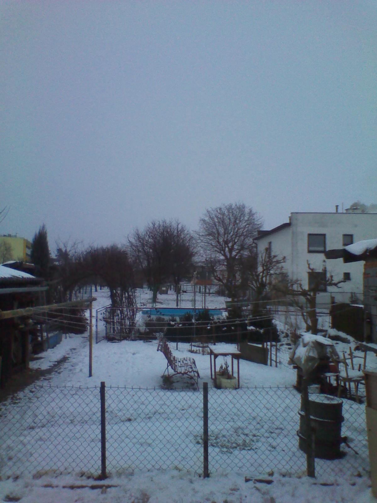 Ráno kolem -8 °C. Z inverze padají vločky.