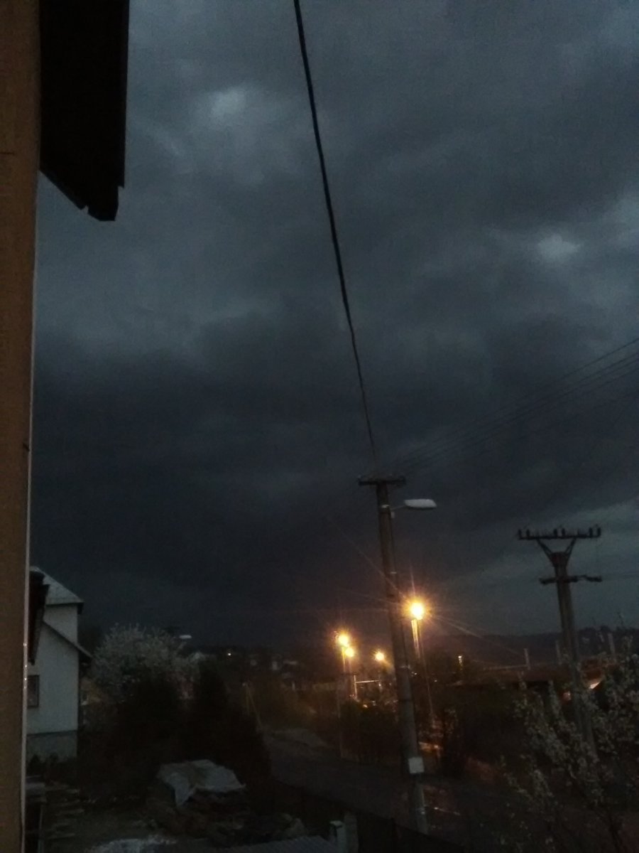 Zamračené, silná búrka, silný dážď,prechodne veľmi silný nárazový vietor !!!!