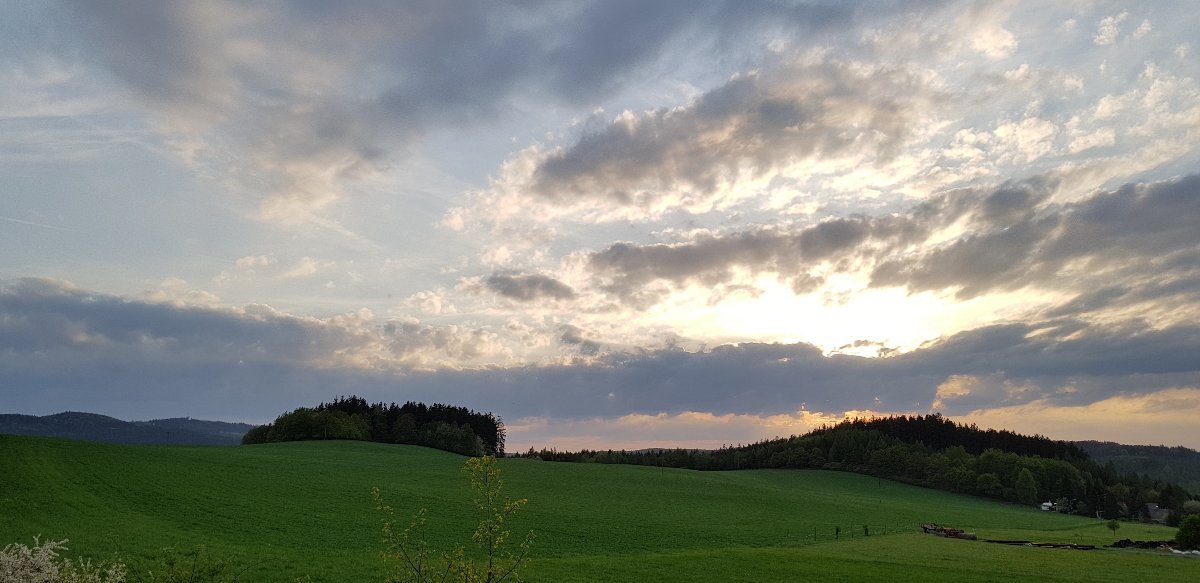 Pohoda. Vítr JV 5 km/hod, tlak 1014 hPa.