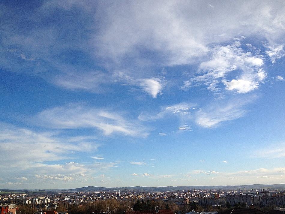Od západu se oblačnost protrhává,tlak klesá 1012hPa,vlhkost 55%