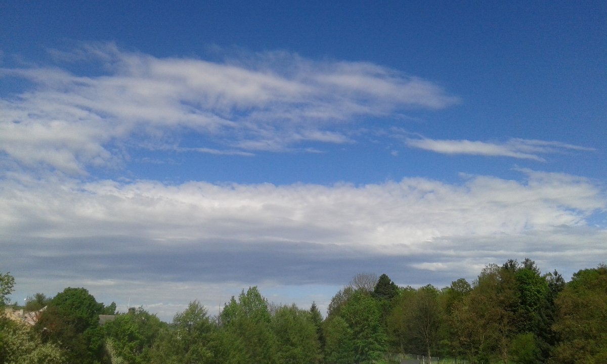 Na západním obzoru jsou pěkně vidět bouřky, vane silný jihovýchodní vítr, tlak: 1002 hPa.