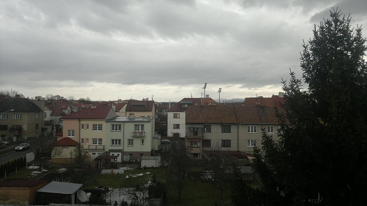 Oblačnost 7/8, zákl.mraků 905m, tlak 1012,4hPa, dohlednost 20km, vlhkost 86,1%, dosti čerstvý ZJZ vítr 240° 7,3m/s(4 Bft).
