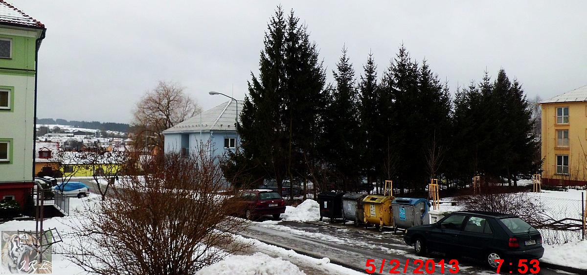 tak sníh z rána je pryč - jemně poprchává - kocour to ale neřeší viz foto 2013 02 04 v 15:26