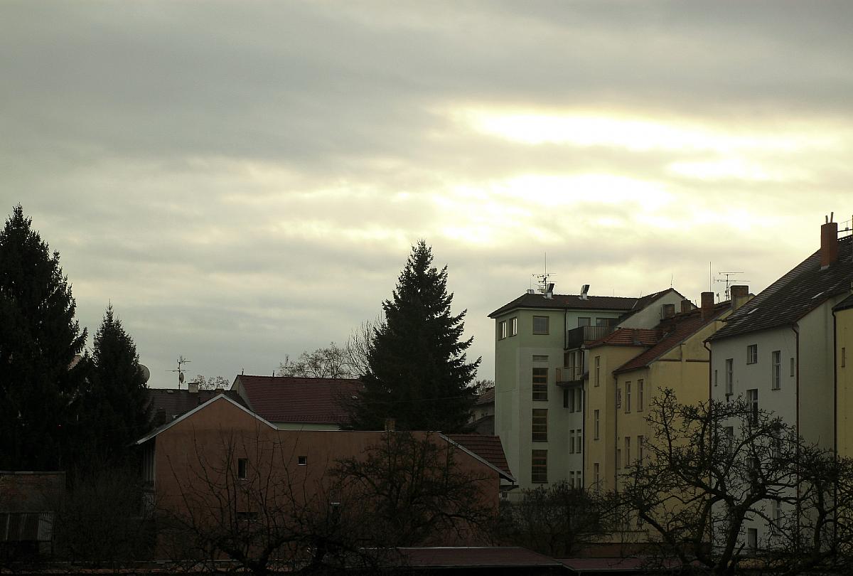Zataženo, slabě prší(zatím 2,8mm), tlak 1011,1hPa, dohlednost 10km, vlhkost 93,3%, mírný Z vítr 267° 4,7m/s(3 Bft).