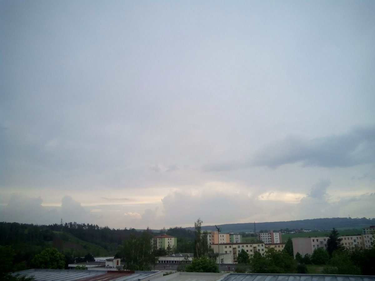 Skoro zamračené a mierny, prechodne silný dážď, búrky.