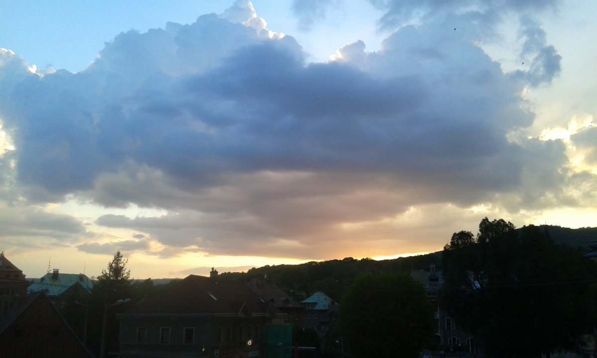 Ubývání oblačnosti. Bezvětří, tlak 1008 hPa, vlhkost 67%.