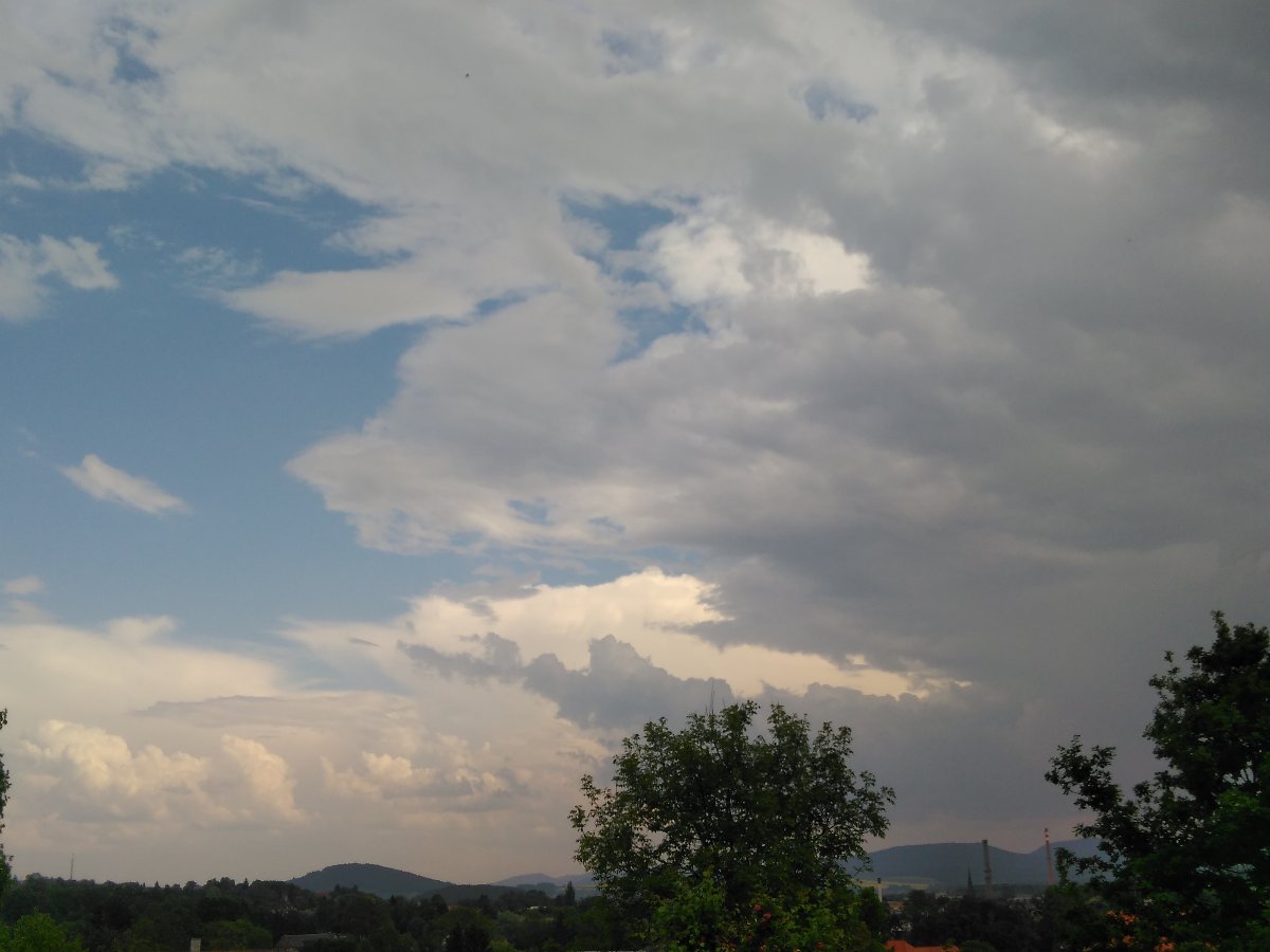 prudké ochlazení o 10 stupnů frormou rychlé bouřky s přívalovým deštěm a kroupami velké intenzity