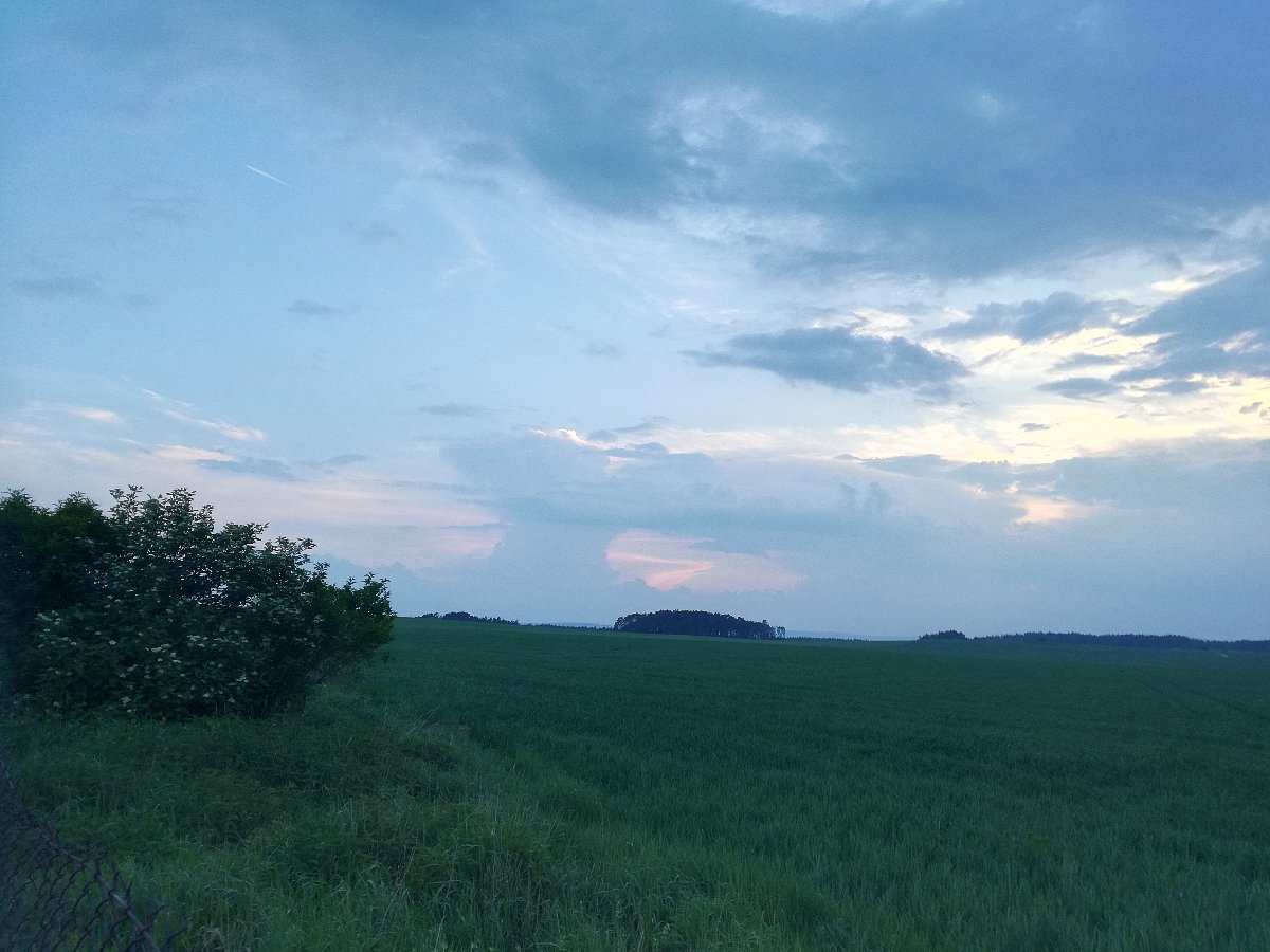 Na jv od nas je bouřka. Hromi slišet nejsou a vítr vane slabý.