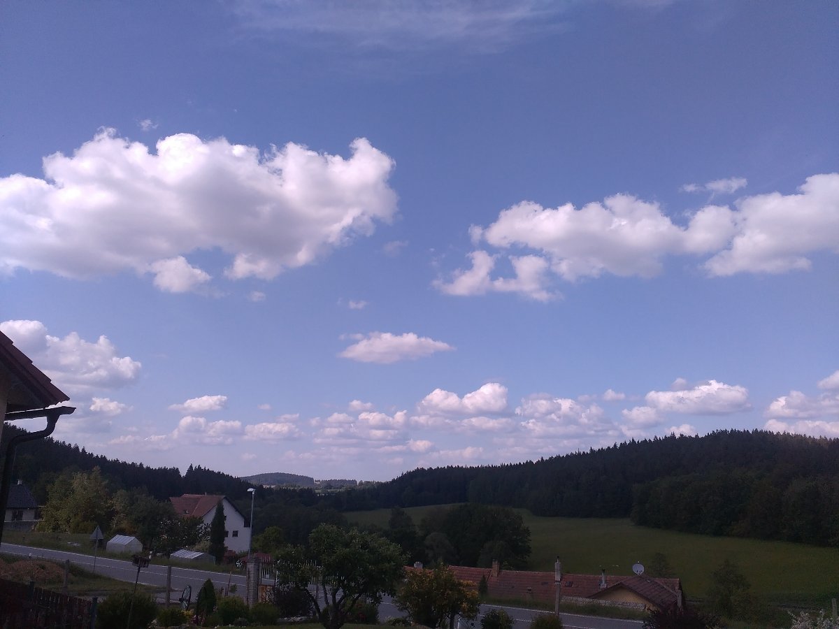 Tlak 1018 hPa, vlhkost 39%, slabý vítr 3,5 m/s od JV