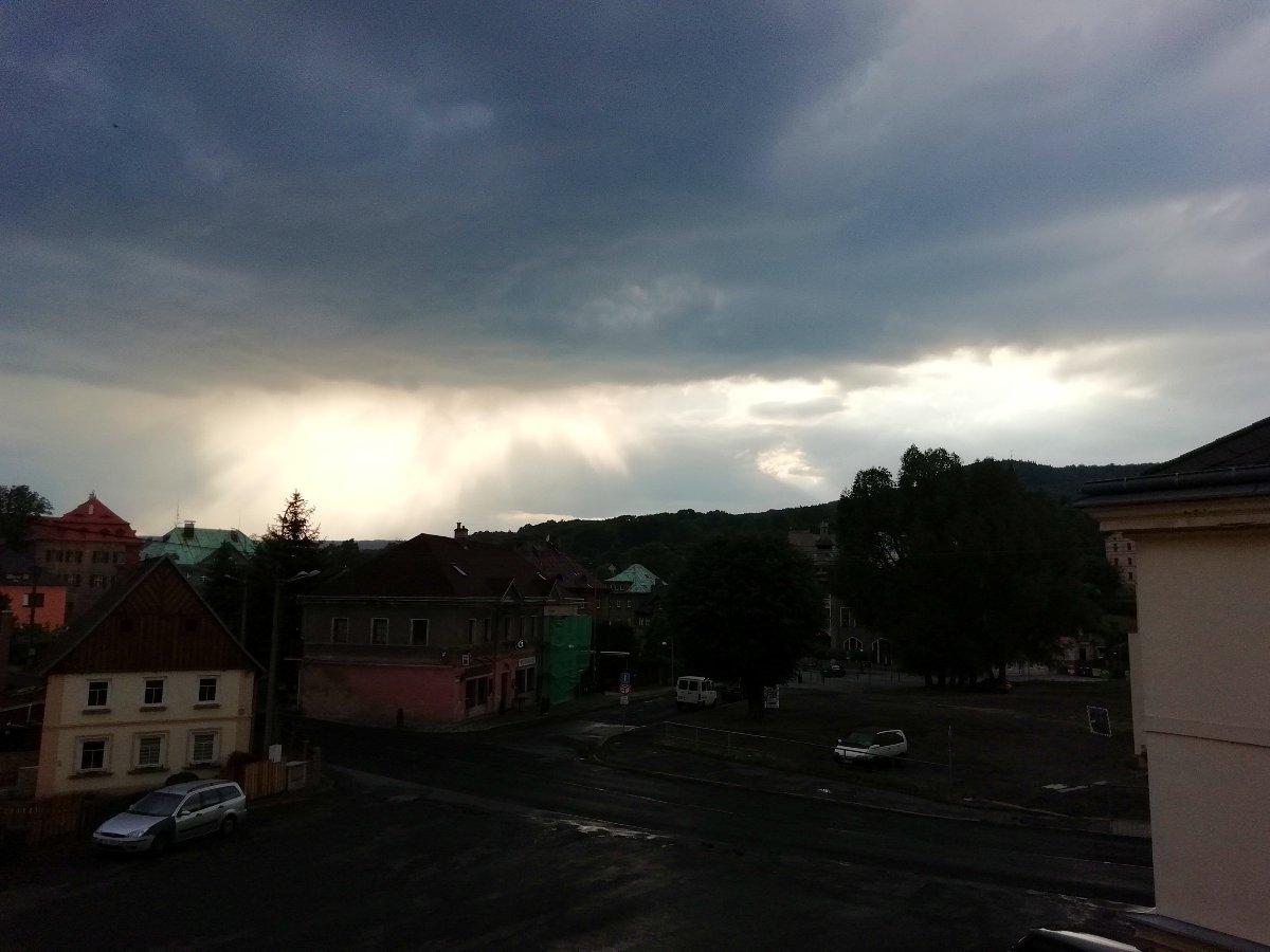 Podvečer je hezký. Vítr mírný S 2 km/hod, tlak 1022 hPa, vlhkost 56%.