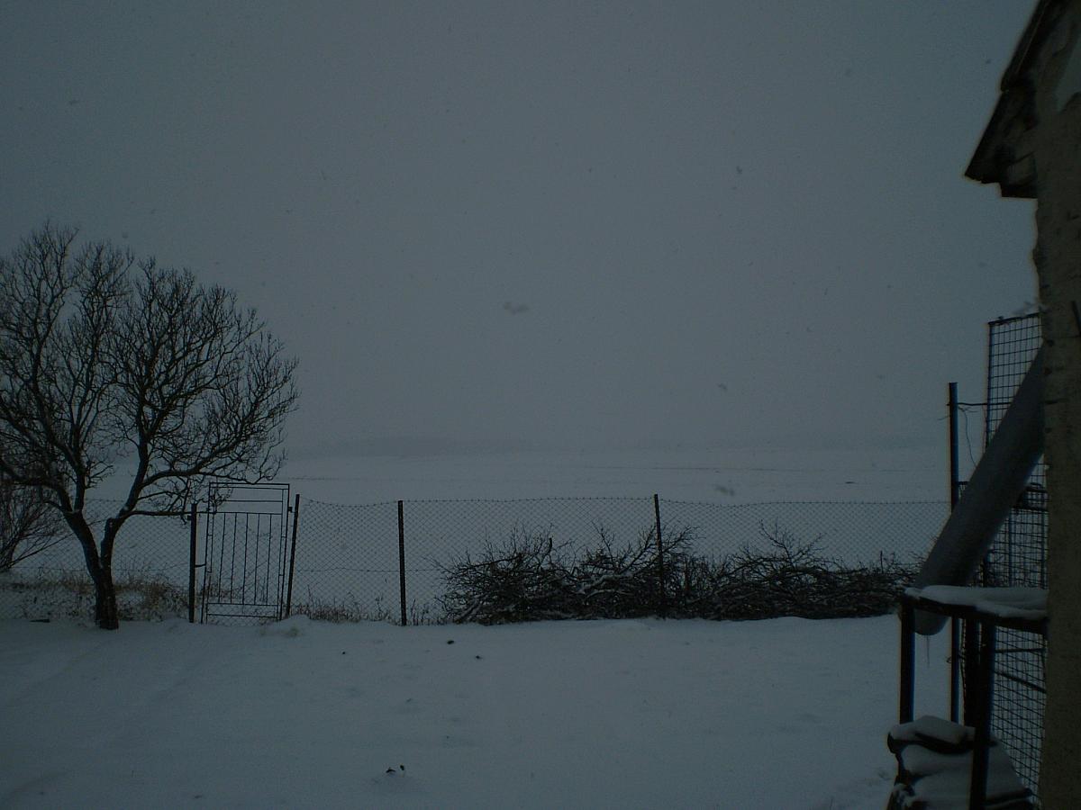 Zataženo, neustále sněží, zákl.mraků 107m, tlak 1019,1hPa, dohlednost 700m, vlhkost 94,3%, slabý ZSZ vítr 281° 1,7m/s(2 Bft).