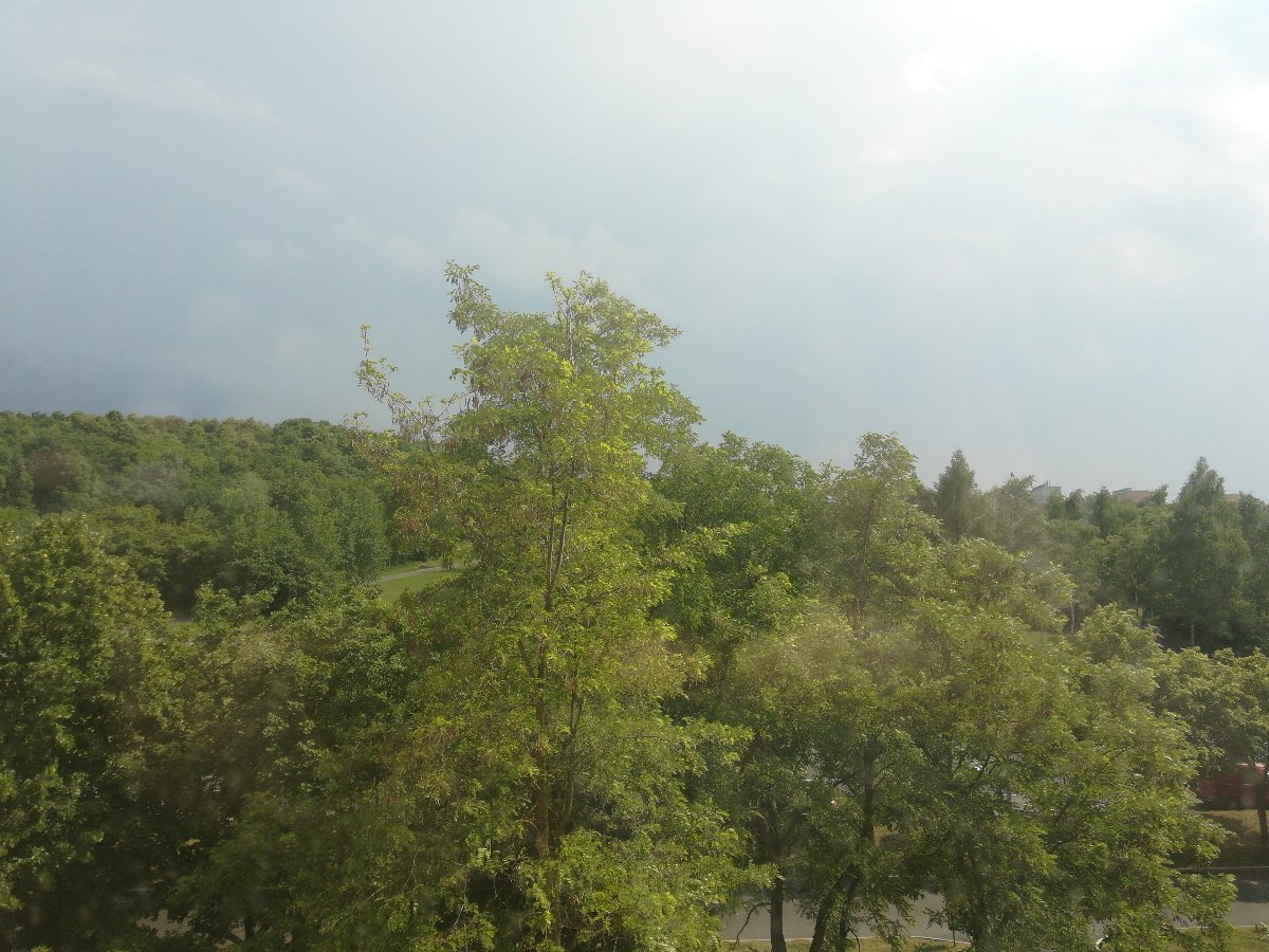 Oblačno, búrka v diaľke.