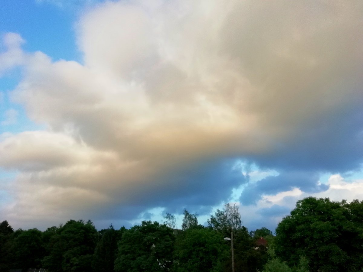 Klidno,tlak 1019 hPa,vhkost52%,při dnešní bouřce spadly 2mm srážek.