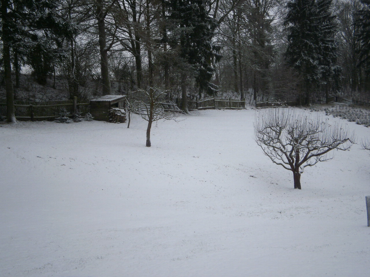 Oblačno občas slabě sněží.Napadlo zde kolem 2cm sněhu.