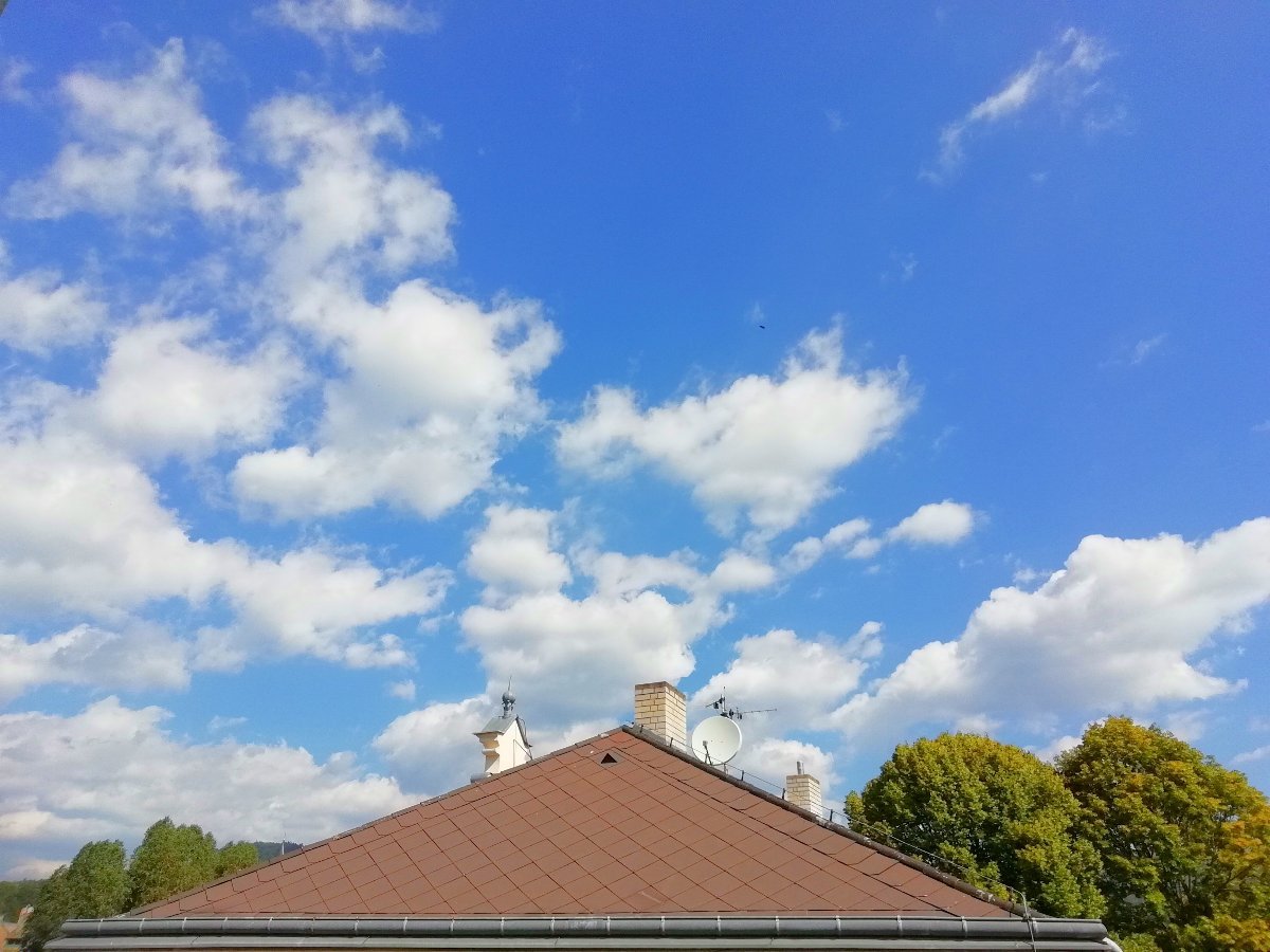 Pár obláčků na západě,jinak azuro,vánek,tlak 1018 hPa