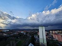skoro zataženo, sněhové přeháňky (7/8) | vítr: S, 9 m/s (nárazy kolem 15 m/s)