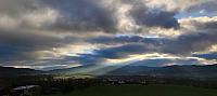 7,6°C, Zataženo až oblačno, Sníh: 0 cm. Ještě před chvilkou (zas) pršelo, silný opar v údolí.