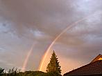 Dnešní, večerní, dvojitá kráska. Za to západní strana vytvořila nádherný do ruda zbarvený mrakový polštář. Ten bohužel vyfocený na mobil nemám, měla jsem co dělat abych doběhla na nějaké fotitelné místo s foťákem.