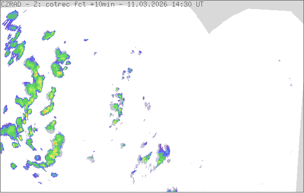 Radarové snímky znázorňují místa, na kterých se vyskytují srážky (přeháňky, bouřky, trvalé srážky). Sledování počasí na území České republiky umožňují dva radary na vrcholech Praha v Brdech a Skalky u Protivanova na Drahanské vrchovině. Dosah radarů je 250 km a jejich provozovatelem je Český hydrometeorologický ústav. Pro odhad intenzity srážek se používají barvy, které vyjadřují hodnotu radarové odrazivosti [dBZ]. Více informací
