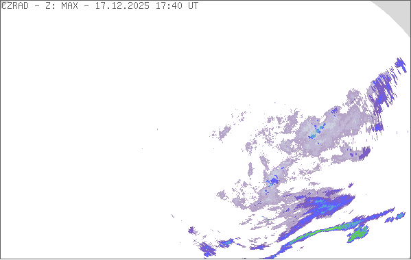 Radarové snímky znázorňují místa, na kterých se vyskytují srážky (přeháňky, bouřky, trvalé srážky). Sledování počasí na území České republiky umožňují dva radary na vrcholech Praha v Brdech a Skalky u Protivanova na Drahanské vrchovině. Dosah radarů je 250 km a jejich provozovatelem je Český hydrometeorologický ústav. Pro odhad intenzity srážek se používají barvy, které vyjadřují hodnotu radarové odrazivosti [dBZ]. Více informací
