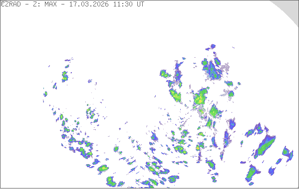 Radarové snímky znázorňují místa, na kterých se vyskytují srážky (přeháňky, bouřky, trvalé srážky). Sledování počasí na území České republiky umožňují dva radary na vrcholech Praha v Brdech a Skalky u Protivanova na Drahanské vrchovině. Dosah radarů je 250 km a jejich provozovatelem je Český hydrometeorologický ústav. Pro odhad intenzity srážek se používají barvy, které vyjadřují hodnotu radarové odrazivosti [dBZ]. Více informací