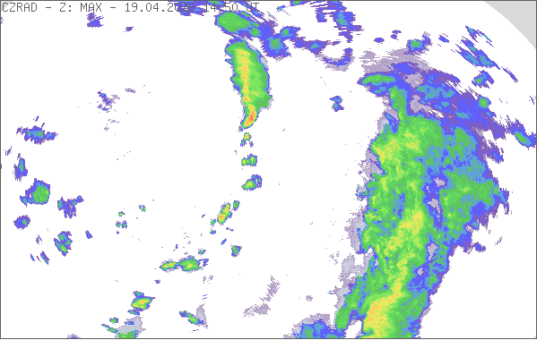 Radarové snímky znázorňují místa, na kterých se vyskytují srážky (přeháňky, bouřky, trvalé srážky). Sledování počasí na území České republiky umožňují dva radary na vrcholech Praha v Brdech a Skalky u Protivanova na Drahanské vrchovině. Dosah radarů je 250 km a jejich provozovatelem je Český hydrometeorologický ústav. Pro odhad intenzity srážek se používají barvy, které vyjadřují hodnotu radarové odrazivosti [dBZ]. Více informací