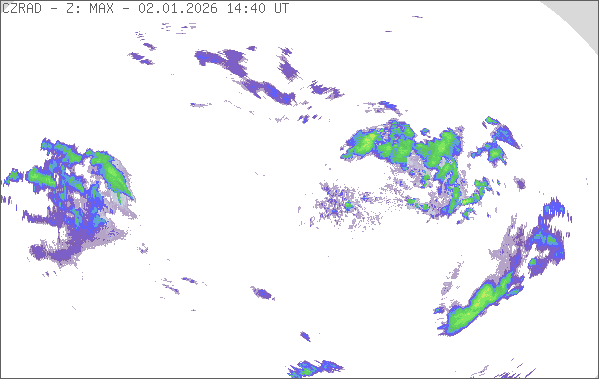 Radarové snímky znázorňují místa, na kterých se vyskytují srážky (přeháňky, bouřky, trvalé srážky). Sledování počasí na území České republiky umožňují dva radary na vrcholech Praha v Brdech a Skalky u Protivanova na Drahanské vrchovině. Dosah radarů je 250 km a jejich provozovatelem je Český hydrometeorologický ústav. Pro odhad intenzity srážek se používají barvy, které vyjadřují hodnotu radarové odrazivosti [dBZ]. Více informací